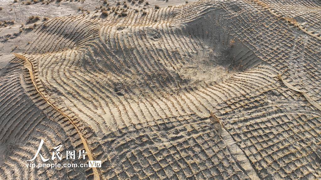2026年1月22日,在甘肃酒泉金塔至大墩门公路两侧的沙丘带上,一道道由阻沙网与草方格构成的“沙海防线”,牢牢锁住了随风移动的沙丘。