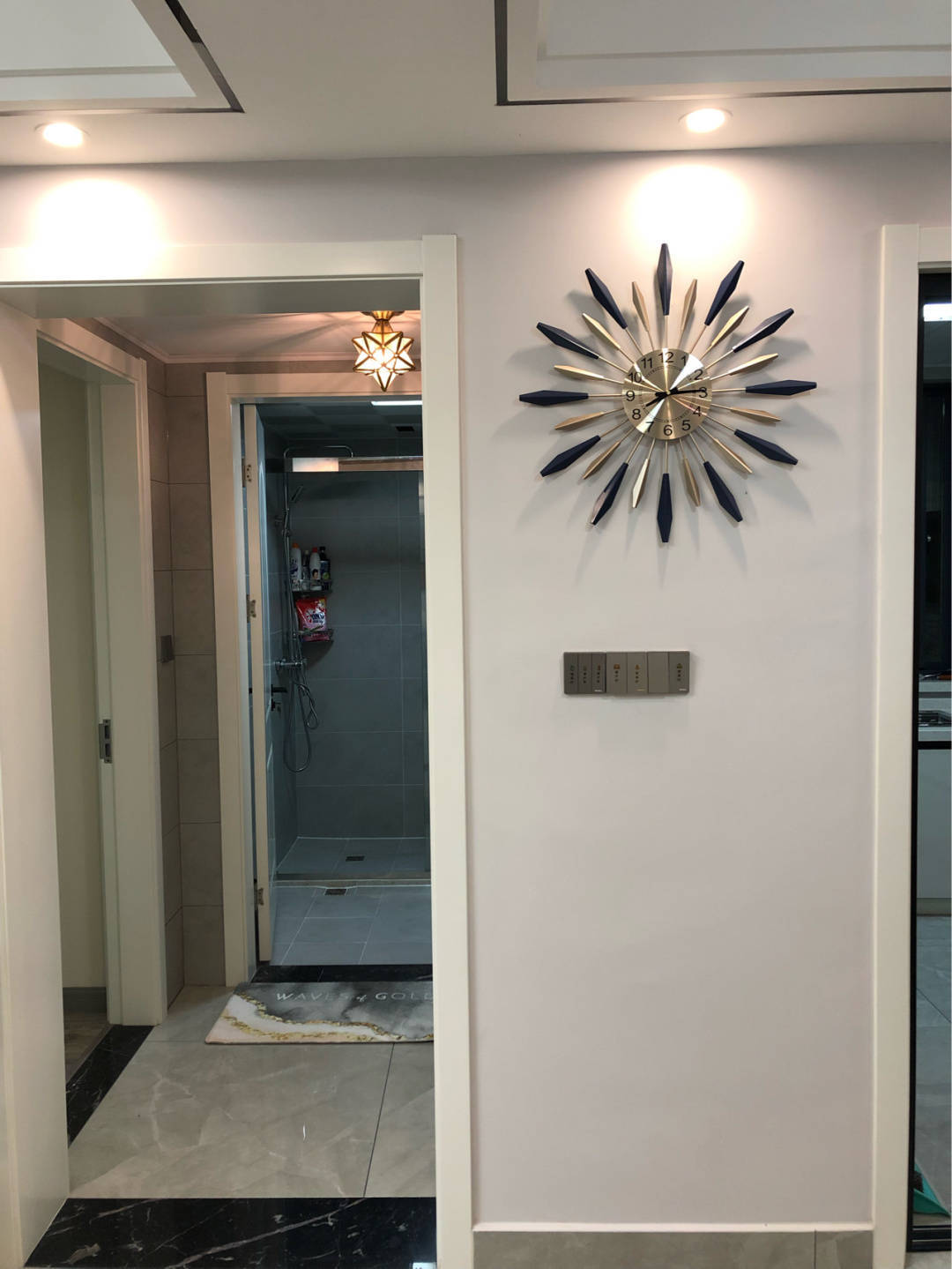 为避免过道墙面过于空白,挂了这个装饰钟,既好看又实用,很多朋友都找我要链接,实物比照片更好看,质感也很棒。