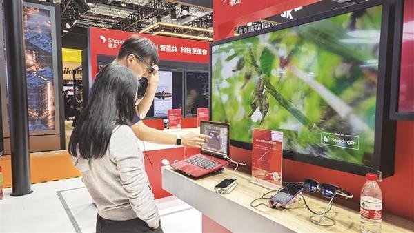 高通展出了基于骁龙平台的多款智能眼镜产品和演示实例。佩戴基于高通骁龙平台的小米、Rokid、雷鸟等品牌的AI眼镜,观众可以体验“超越屏幕交互”的视频通话、实时翻译、健康助手等应用。在展区,体验者佩戴VITURE Luma智能眼镜,便可观看实时2D转3D影片。在“骁龙AR穿越冰河纪”体验区,体验者通过搭载第一代骁龙 XR2+平台的 Rokid AR Studio设备,便可看到虚拟猛犸象走入现实中的冰河沙盘,实现跨越时空的体验。