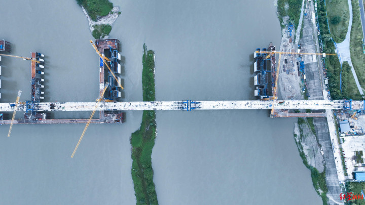 ▲市域(郊)铁路成眉线岷江特大桥建设现场